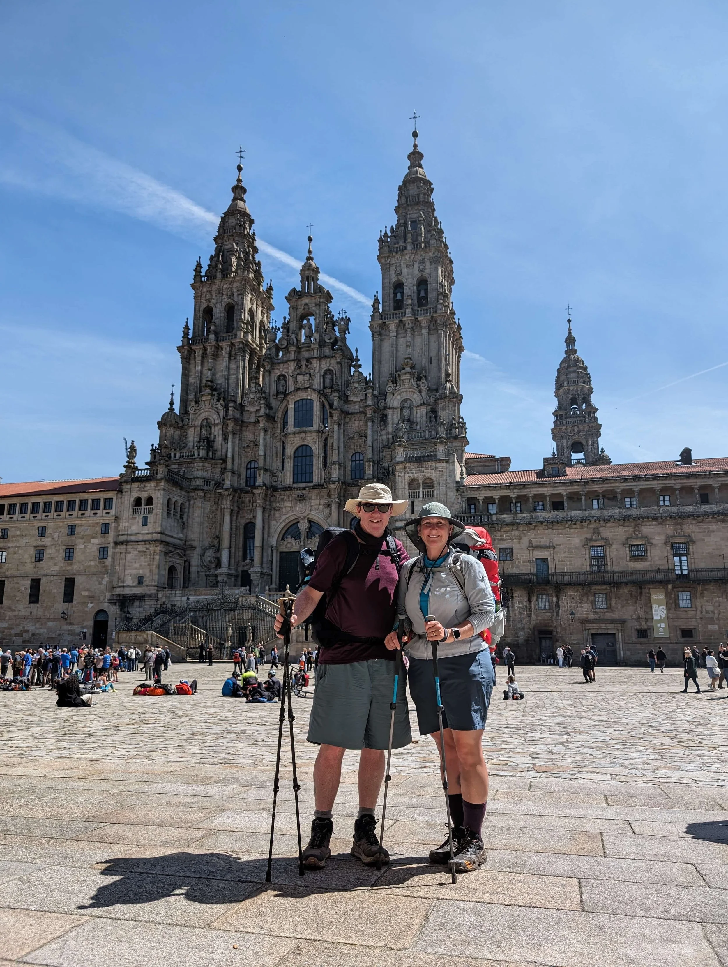 A picture of us shortly after arriving in Santiago de Compostela, we had just walked 331km over 14 days. The Camino Primitivo was an amazing experience, and for us it was a big introduction to walking a Camino in Spain.